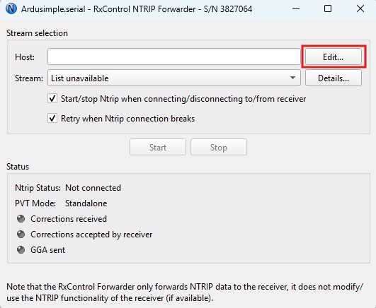 1. It will bring up the Ntrip Forwarder dialog. Press Edit.