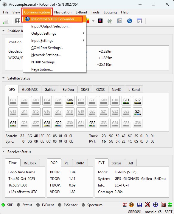1. Go to main menu Communication -> RxControl NTRIP Forwarder…