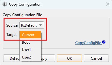 1. Set Source to RxDefault and Target to Current. Press OK.