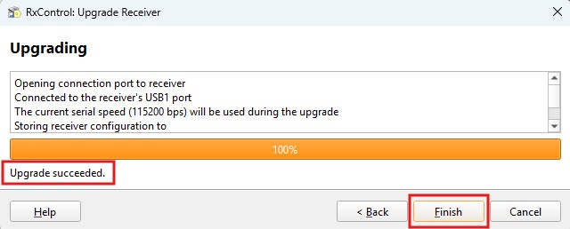 1. The Upgrading window will open showing its progress… make sure not to disconnect your receiver while it happens, and if everything worked fine you should have an Upgrade Succeeded message. Press Finish.