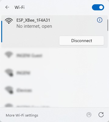 - The WiFi NTRIP Master module will create its own WiFi Network called ESP_XBee_xxxxxx (xxxxxx are some random numbers/letters unique for each device). Connect to the WiFi Network using a PC.
