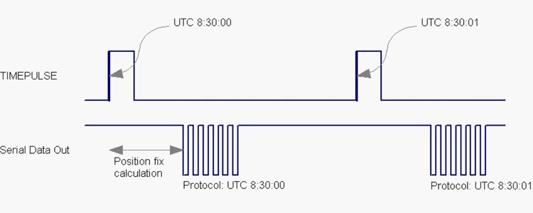 In your application, you can connect the Timepulse and the Serial Data Out to your processor or computer. At some point, your application will read that time is 8:30:00. It’s time to get ready for the next timepulse, that will indicate exactly 8:30:01.
