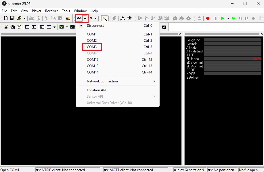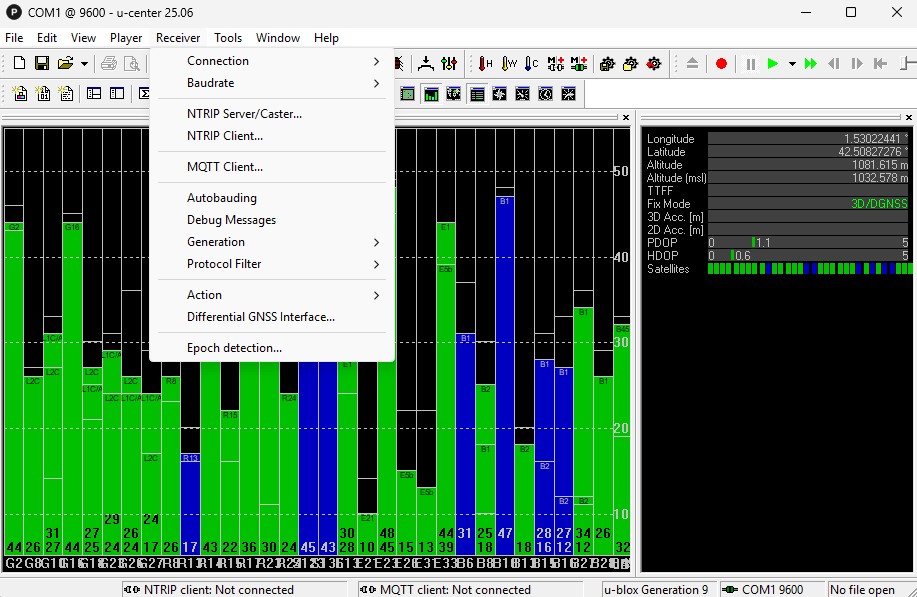 In the GNSS Connection menu: