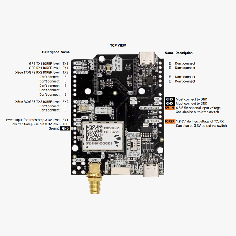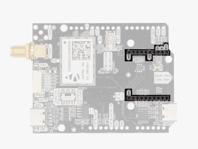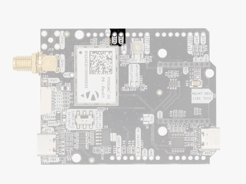 • TX2: XBee UART TX (this pin is also connected to Mosaic COM2 RX).