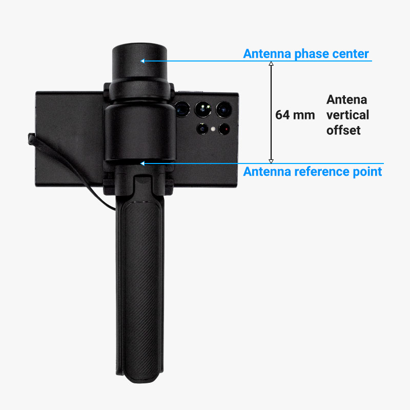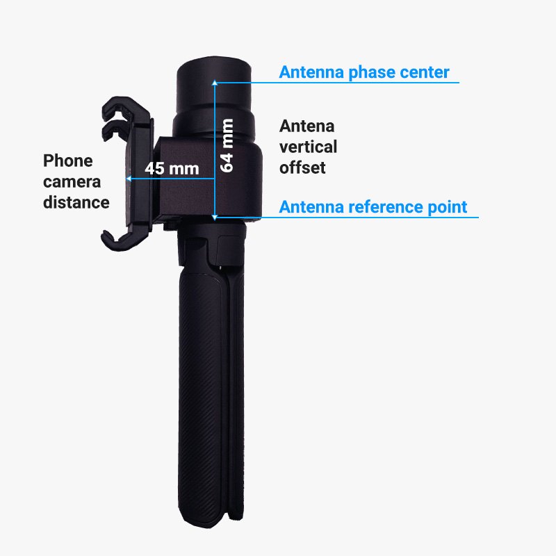 We recommend using the provided SP Connect adhesive dock directly attached to the phone case to ensure that the smartphone is always mounted in the exact same position when using the RTK Handheld kit for photogrammetry. This is critical, as the offset (distance between the GNSS antenna and the camera lens) has to be introduced in the photogrammetry software and remain constant during image capture sessions.